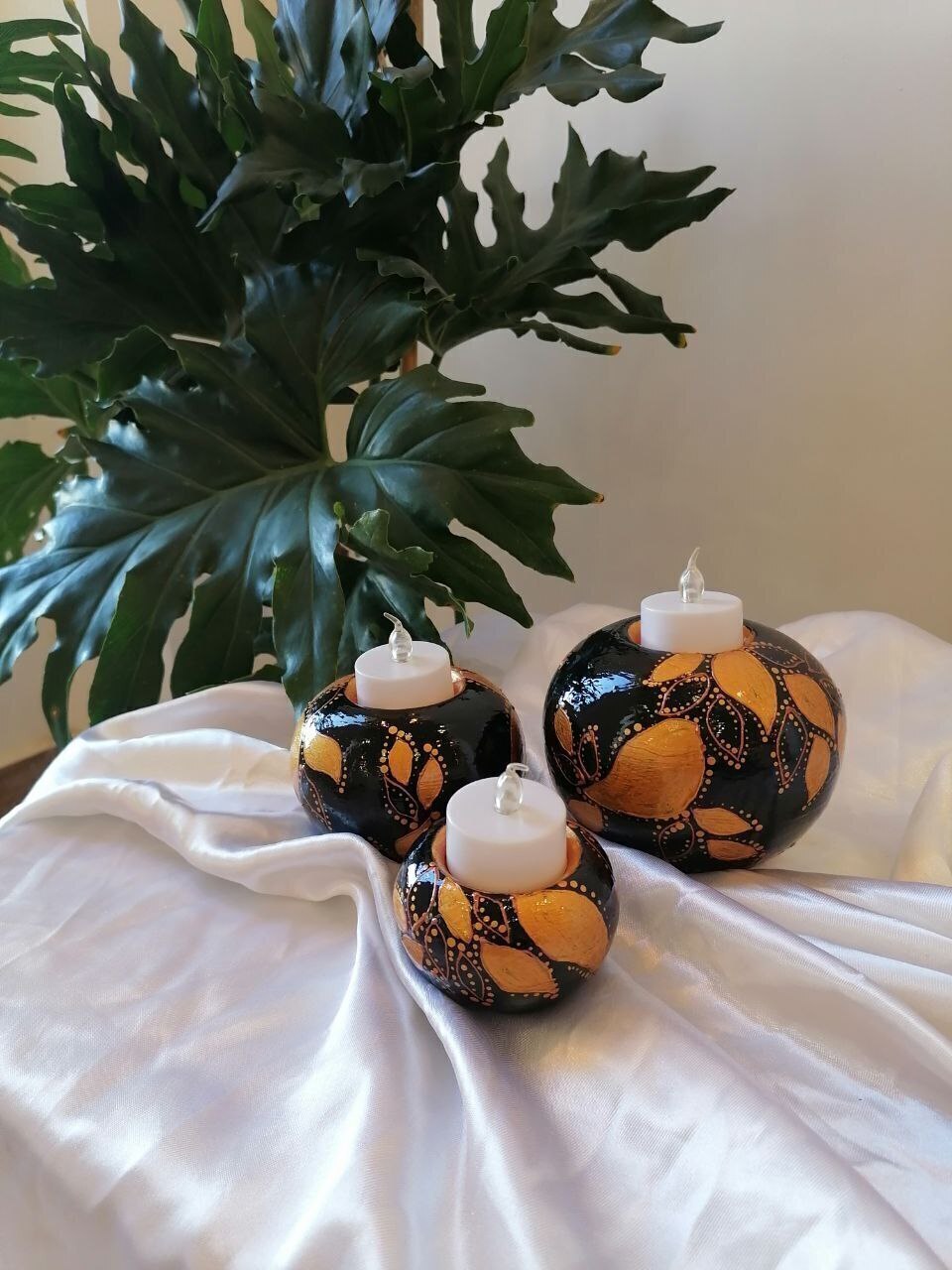 جاشمعی سه تکه توپی مشکی طلایی کد ۱۰۶